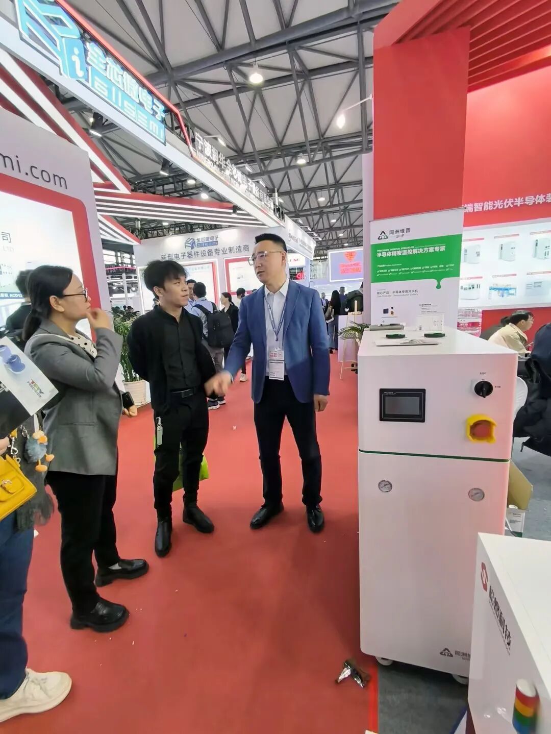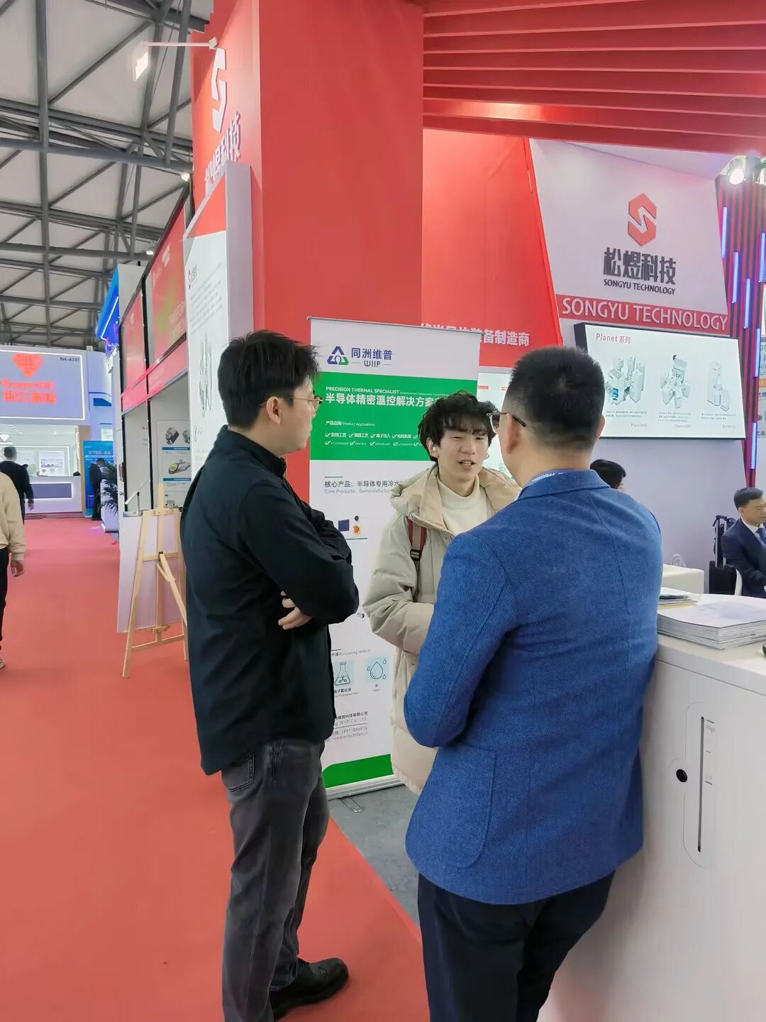 开展首日,展台吸引了众多专业观众驻足交流。前来咨询的多为晶圆制造及半导体设备企业的技术人员,大家关注点主要集中在温控精度、长期运行稳定性、通讯接口兼容性以及定制化集成能力等方面。现场技术团队针对不同工艺应用场景,结合实际项目案例与实测数据,与来访客户进行了深入探讨。